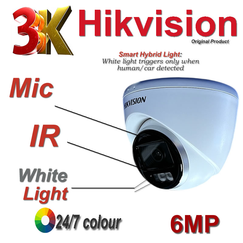 Hikvision 3K ColorVu CCTV kit with DS-2CE72K0T-LFS Audio Cameras Smart Hybrid Light 40M IR and AcuSense DVR with AI Facial Recognition