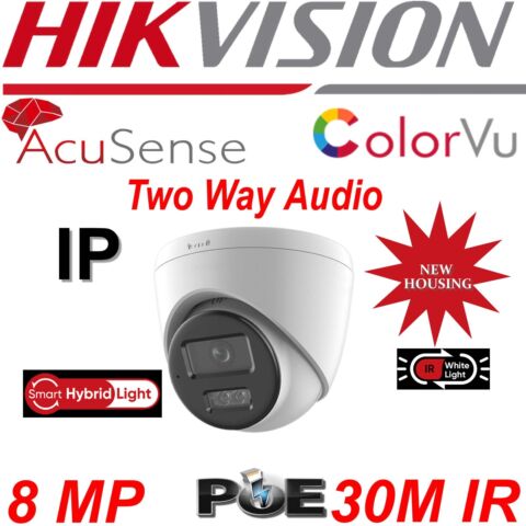Hikvision DS-2CD1383G2-LIUF/SL 8MP Smart Light ColorVu Two Way Audio Camera 4K AI Intelligent IP POE NVR CCTV System.