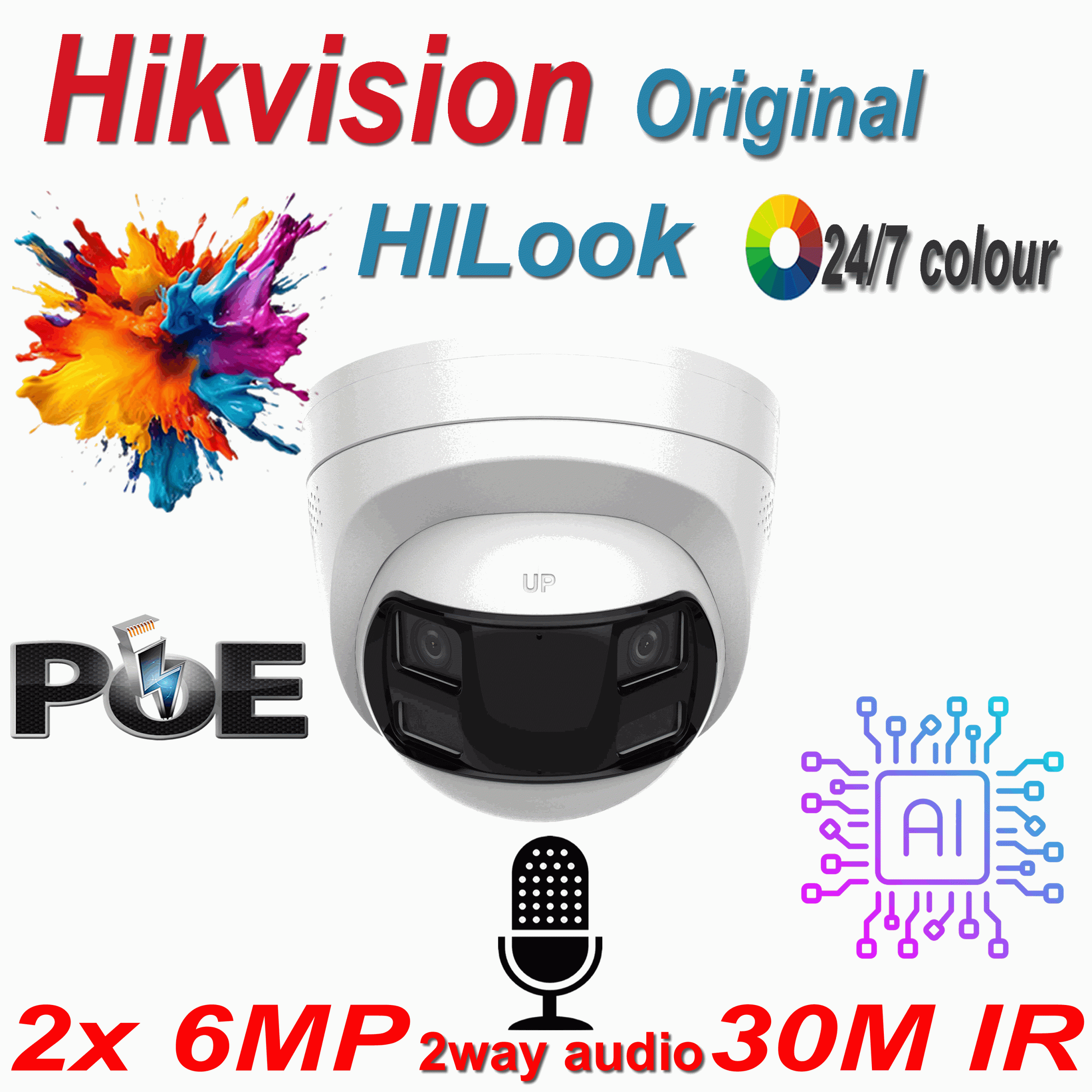 Be the first to review “HiLook IPC-T260HAD-LUF/SL 6MP Two Way Audio Dual Lens 180° Panoramic PoE ColorVu Hybrid Light CCTV Security Camera”